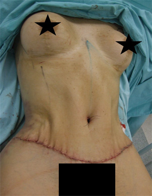 Antes com o resultado da primeira Abdominoplastia realizada a 9 anos atrás...Depois com a correção + Enxerto nos Glúteos.