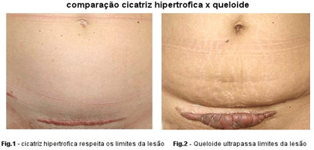 Confundida constantemente com o quelóide, a cicatriz hipertrofica é um tipo de cicatriz que se assemelha a um quelóide, mas não é tão intensa e regride sozinha com o tempo, ficando plana na maioria das vezes depois de 6 a 16 meses da cirurgia. Outras cicatrizes inestéticas rotuladas de quelóide, são cicatrizes alargadas, atróficas (planas) ou retraídas. Todas elas não apresentam alto relevo, apesar de serem esteticamente indesejáveis.